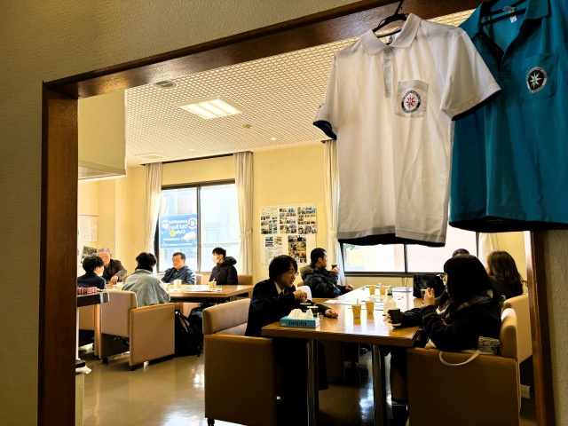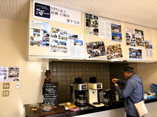 同窓会は、伊勢志摩支部と事務局で恒例の珈琲店”Old Boy Cafe”を百周年記念資料館一階にて開店し、資料室の見学案内や同窓会設立百周年記念事業で修復した”練習帆船模型「あまき」”の案内、故郷の海を愛する会の広報活動を行いました。