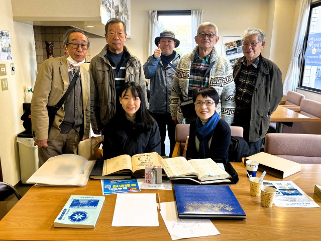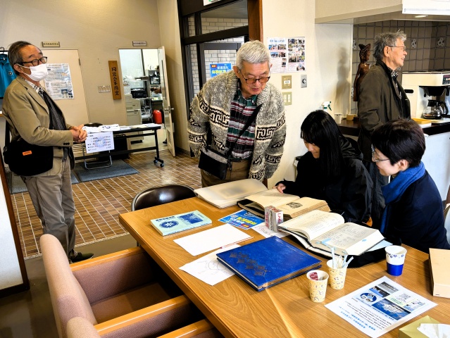 今年は卒業生の娘さんとお孫さんが当時お父様が受けた教育内容について調査研究するため来店されました。数か月前から調査のご要望をいただき、同窓会で保管している書物からお役に立てるものがないかと相談を受けていたご縁で海学祭に合わせて来校されました。同窓生から当時のお話を聞きながらお父様やおじい様の通われた学校を感じていただけたかと思います。
